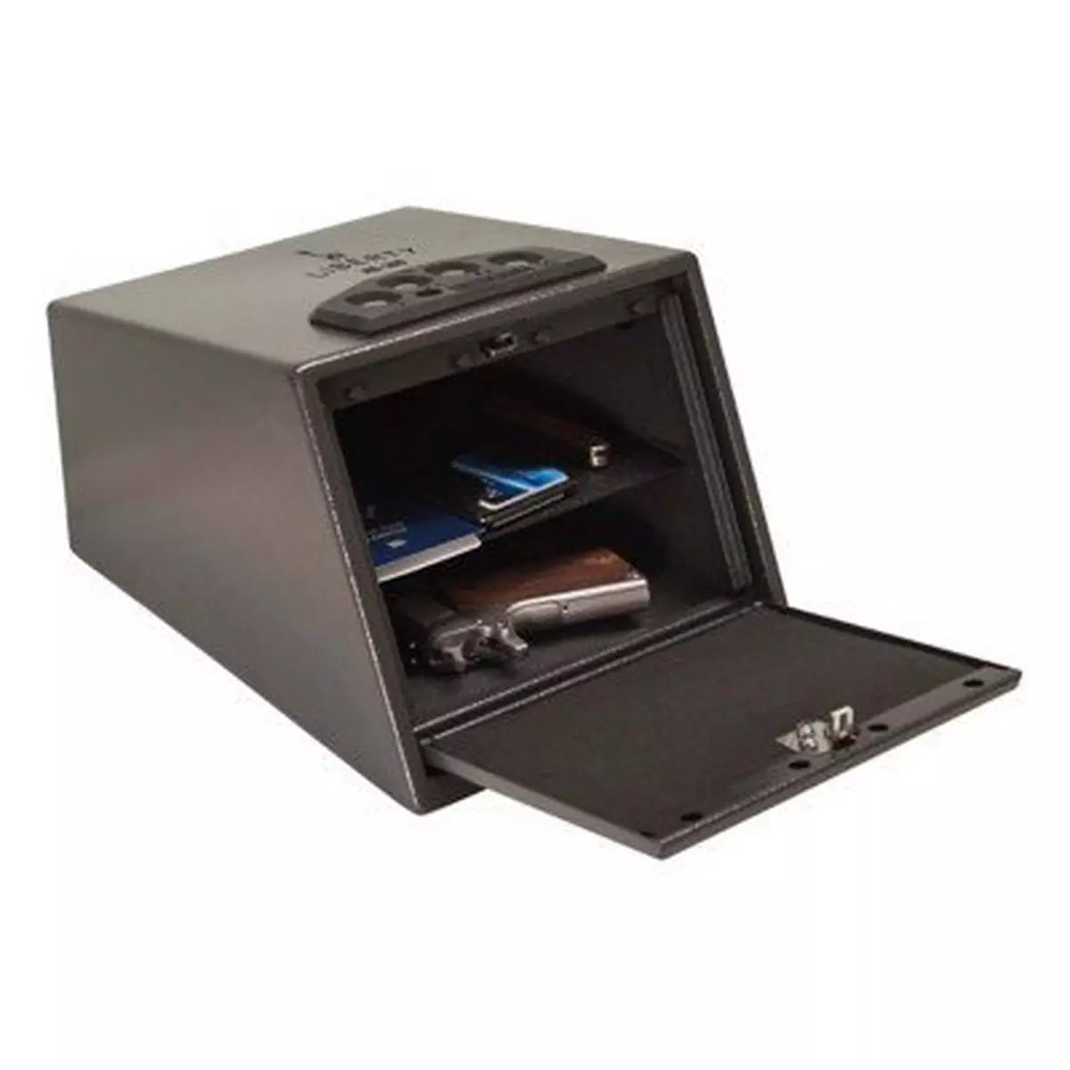With an auto-opening Door, lighted interior, interior shelf, and a key backup, the Liberty HD-300 Quick Vault provides ample space and reliable speed when needed! The small electronic gun safe's angled front door design allows excellent visibility and simple access.